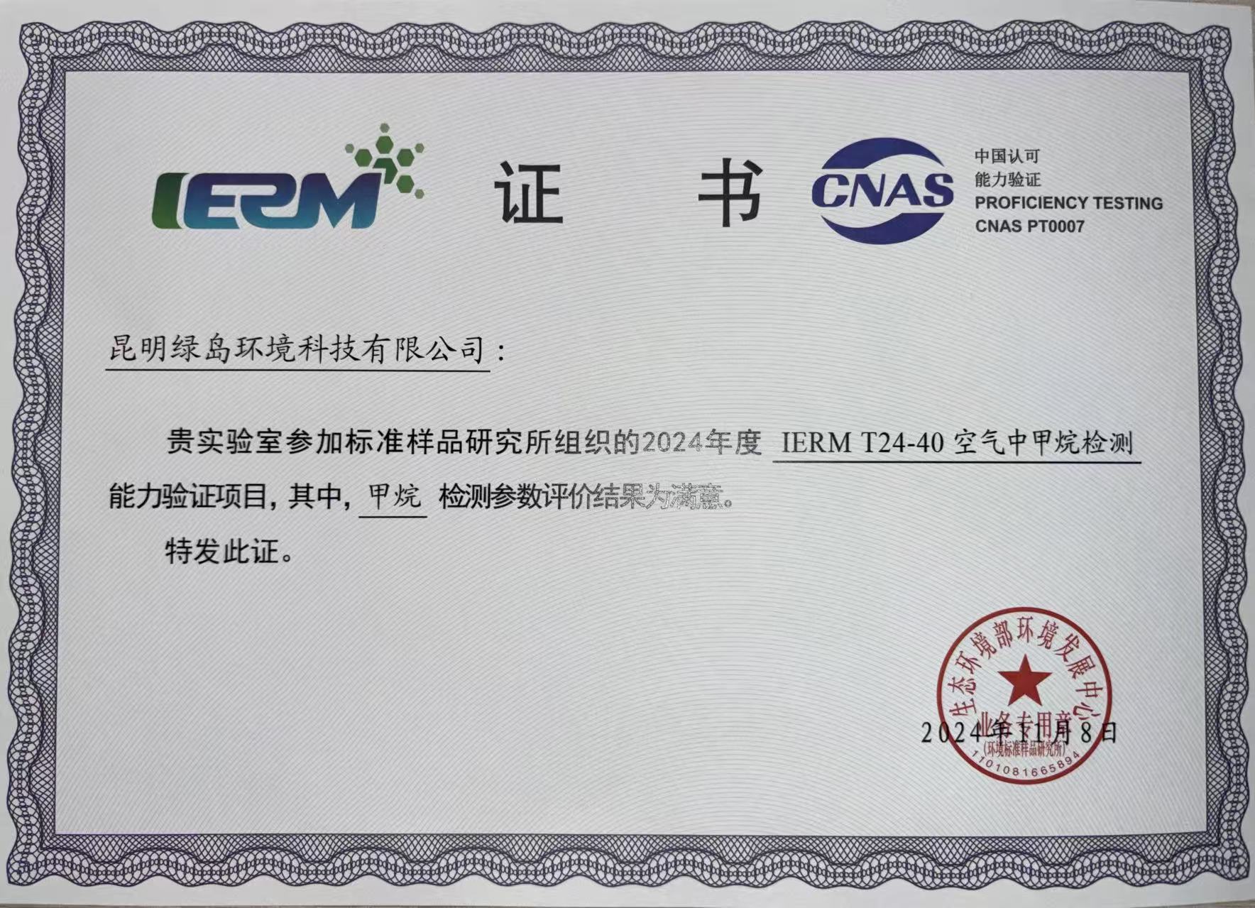 強化能力建設 夯實發(fā)展根基(三) ——昆明綠島環(huán)境科技有限公司喜獲2項能力驗證證書